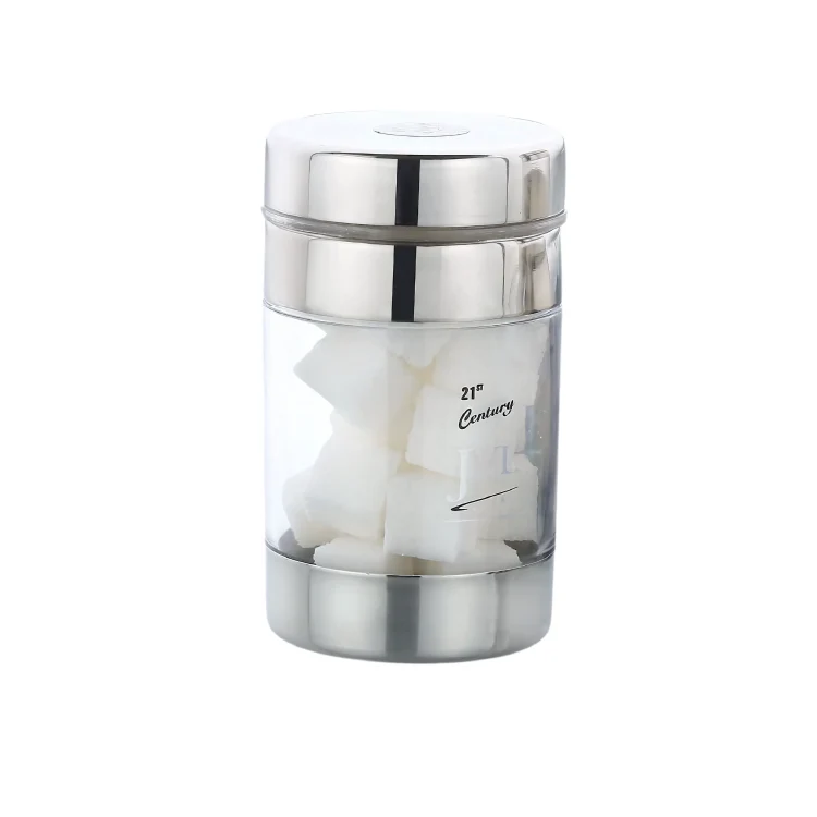 A premium airtight canister designed with a polished stainless steel body and clear polycarbonate walls, offering both durability and style. Perfect for keeping dry foods fresh while making pantry organization easier.
