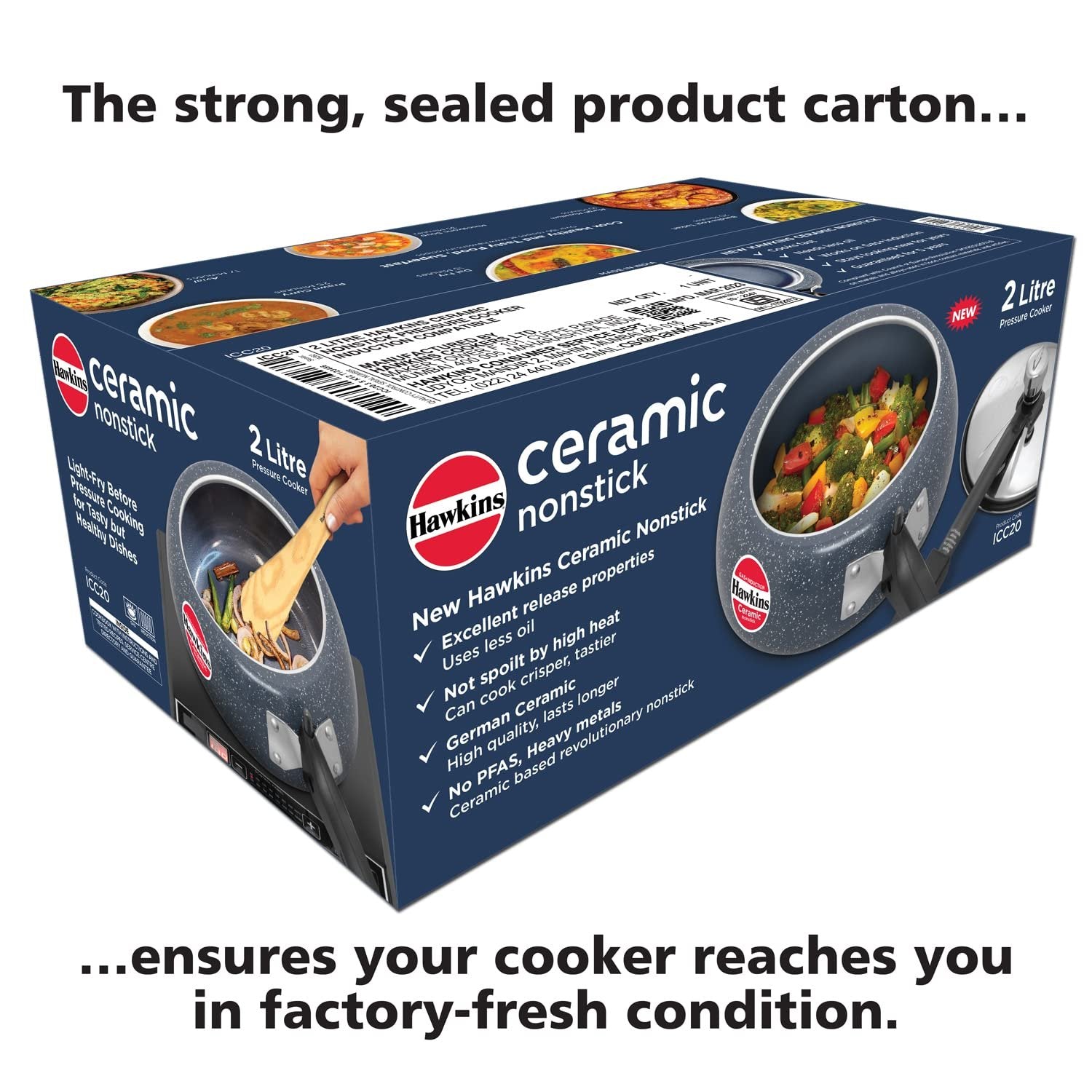 - New Hawkins Ceramic Nonstick Inside: Not spoilt by high heat - Can cook crisper, tastier