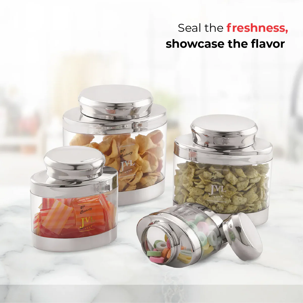 JVL Oval Shape Stainless Steel & Polycarbonate Canister Kitchen Storage Container