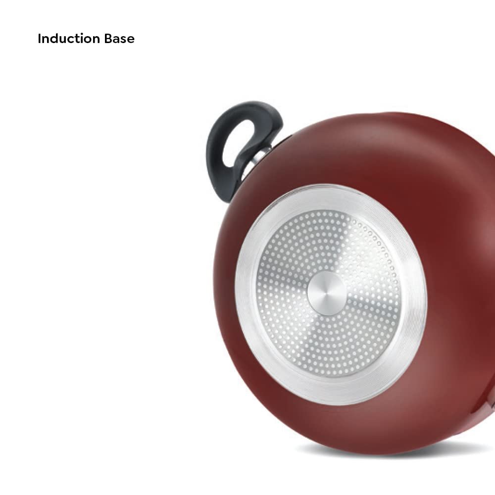 Design: Features a round base for even heating and vibrant red finish for a stylish kitchen addition.