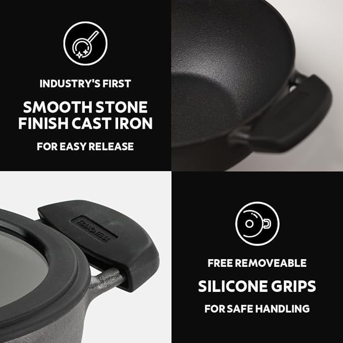 Ergonomic Snap-On Silicone Grips: Removable grips provide secure handling and heat protection during use.